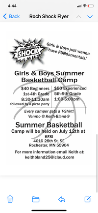 AAU Rochester Shock is now seeking players for the season! For more information please contact Keith Bland at 507-358-5455