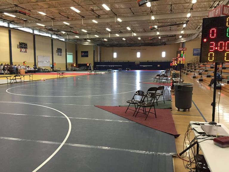 In total, the venue can hold a maximum of six volleyball courts, six basketball courts, or sixteen wrestling mats!