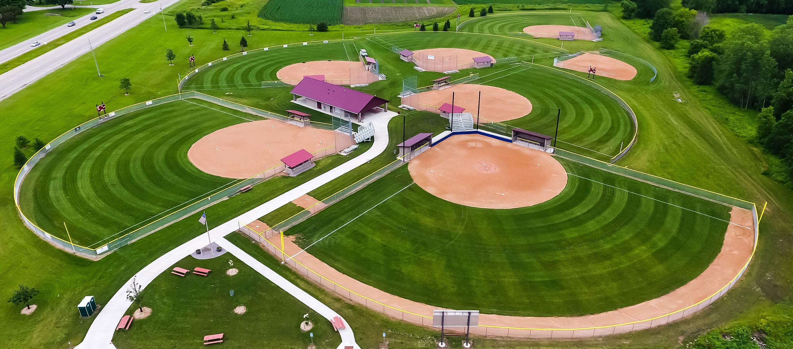 All fields equipped with electronic scoreboards and covered dugouts